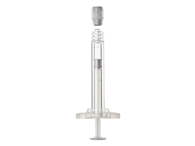 环烯烃共聚物COP预灌封注射器,低吸附,强碱无玻璃脱片,用易握型顶部旋盖设计,一体化的鲁尔旋锁确定安全连接。鲁尔椎体、鲁尔旋锁符合ISO594-1、ISO594-2标准。内部鲁尔大钻孔,可与无针连通装置项链,安全的容器密封完整性(CCI),采用蒸汽灭菌,最大限度地减少容器之间的相互影响。